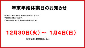 うどん屋だし道楽 年末年始休業日のお知らせ